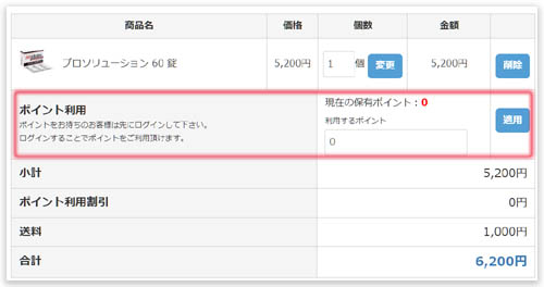 お薬ラボのポイントは注文の商品を選択した後の買い物かごのページで使用します。保有しているポイントが表示されますので、一部あるいは全部を商品購入に利用することが可能です。