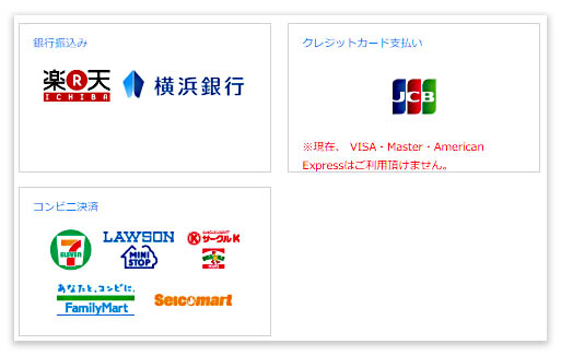 - 支払い方法:クレジットカード・銀行振込み・コンビニ決済